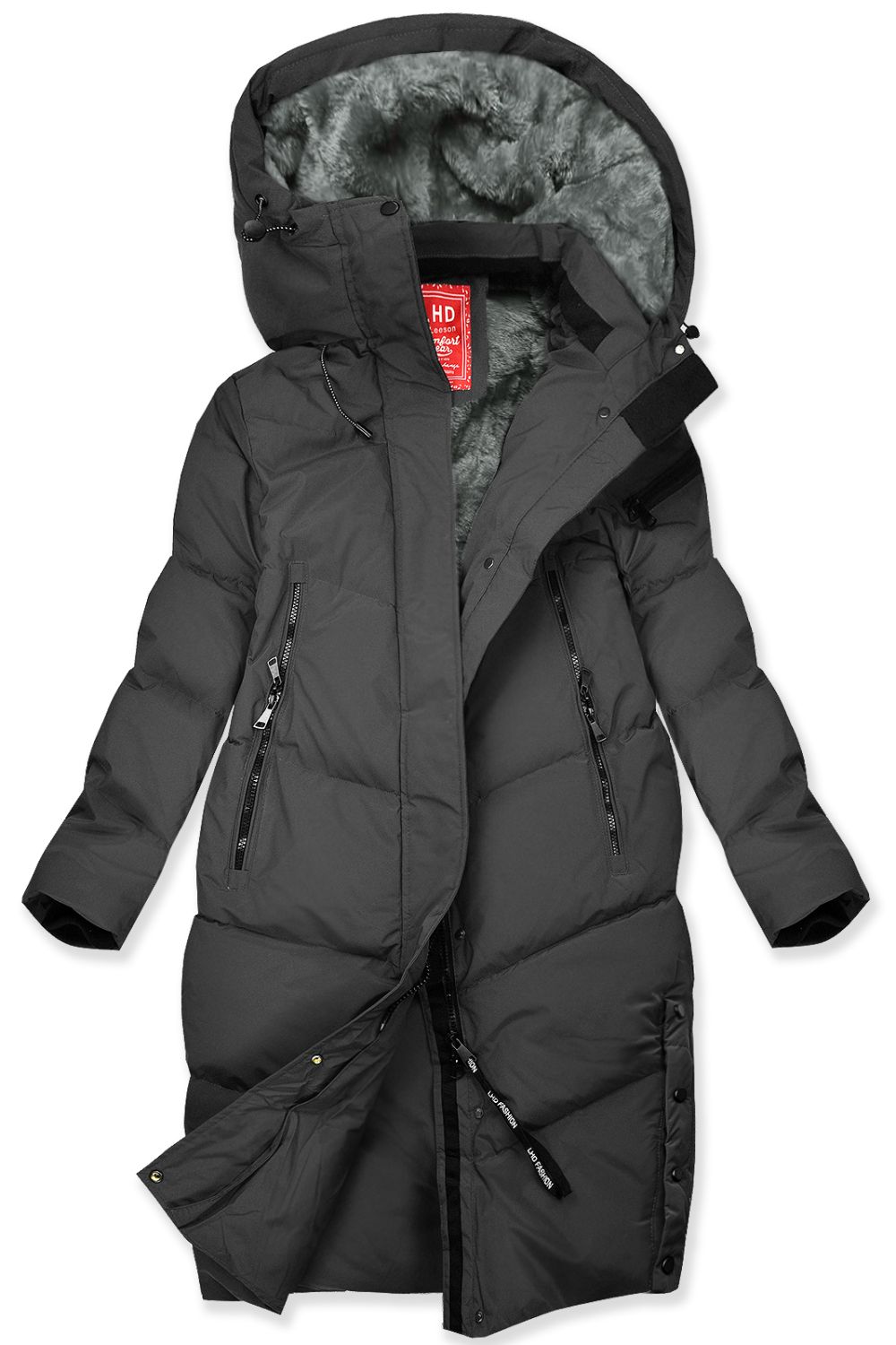 Extra teplá dlhá zimná bunda s plyšom sivá