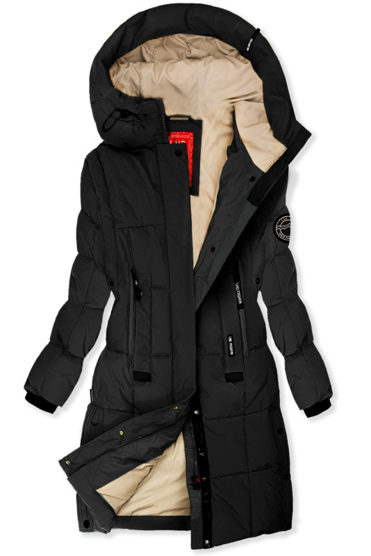 Predĺžená čierna bunda na jeseň/zimu SPORTY