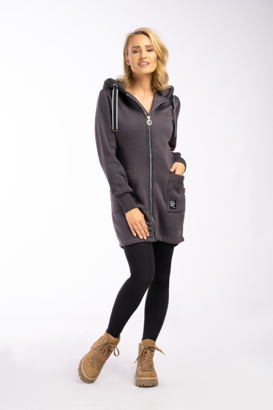 Tmavosivá mikina s predĺženým zadným dielom
