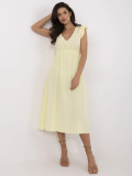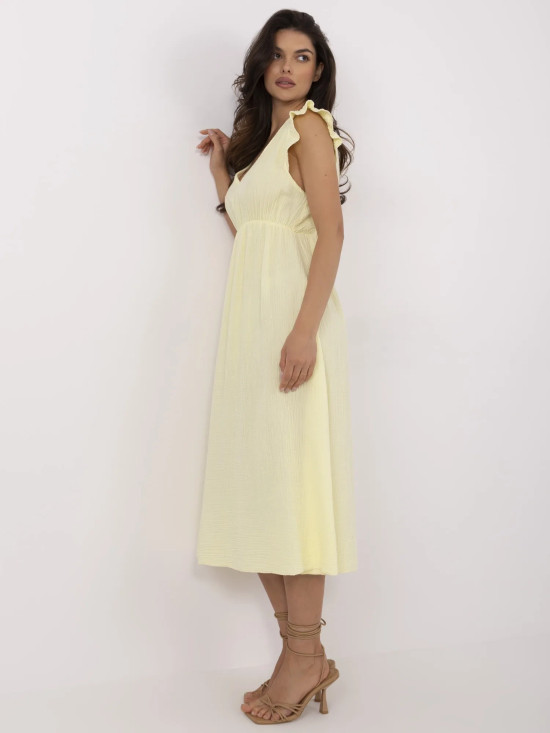 Objavte dokonalú kombináciu štýlu a pohodlia s týmito midi letnými šatami. Ich elegantný V-dekolt a krátke rukávy sú ideálne na teplé dni, zatiaľ čo dĺžka dodáva šmrnc a ženskosť. Šaty sú vyrobené z kvalitnej 100% bavlny, čo zaručuje maximálne pohodlie a priedušnosť. S praktickým viazaním si môžete prispôsobiť strih podľa svojich predstáv. S jemnou volánikovou spodnou časťou sa budete cítiť skvele pri každom pohybe. Tento kúsok je skvelou voľbou na rôzne príležitosti, či už sa chystáte na piknik alebo večernú prechádzku.  Pranie v práčke na 30 ° C zaistí, že si šaty zachovajú svoj vzhľad aj po mnohých noseniach.