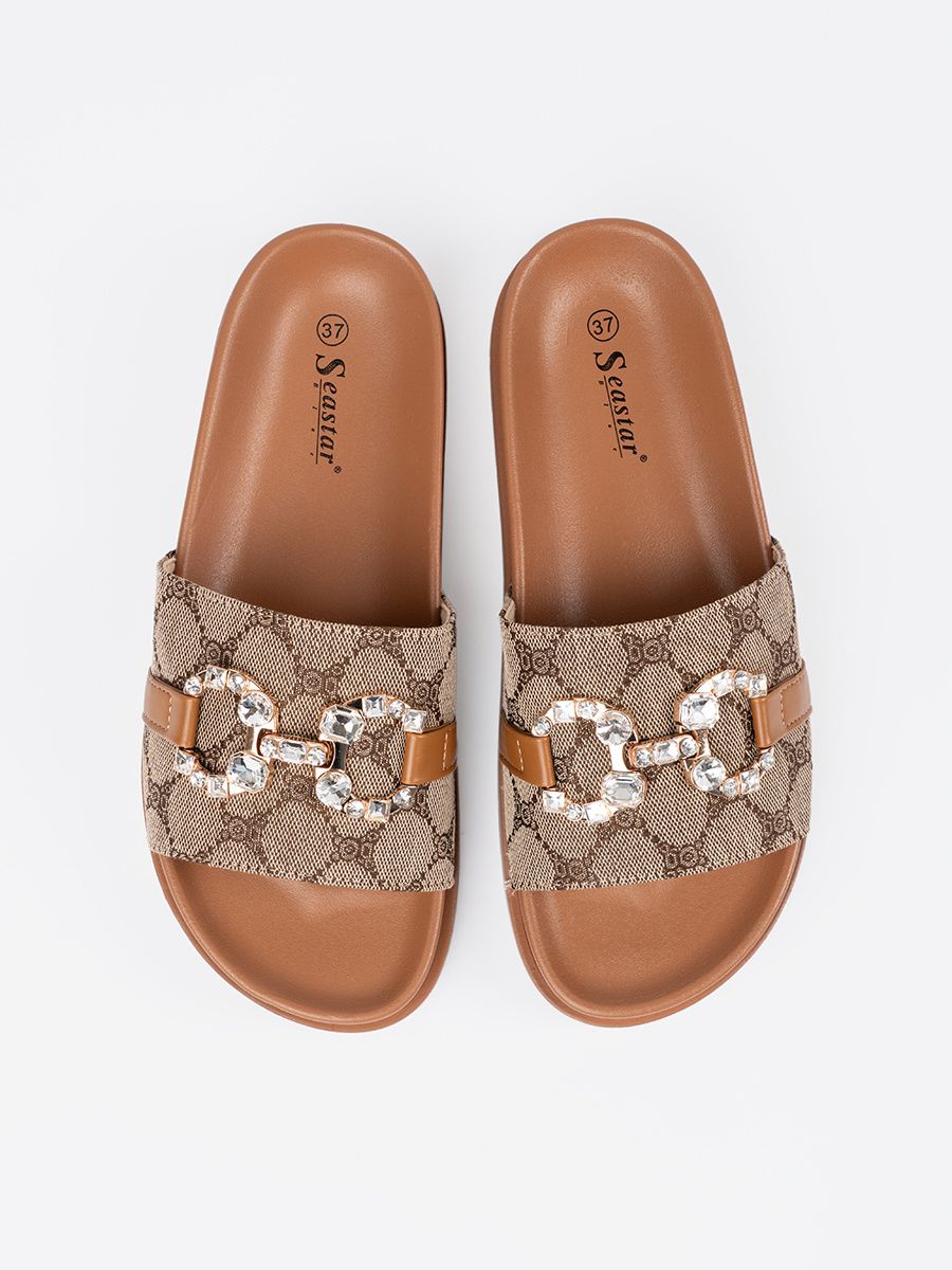 Objavte dokonalú kombináciu štýlu a pohodlia s našimi hnedými šľapkami so zdobením. Ich praktický dizajn na vsunutie a otvorená päta robí z týchto šľapiek ideálny doplnok na teplé jarné a letné dni. Vyrobené z kvalitných materiálov, vrátane imitácie kože a textilu, sú nielen štýlové, ale aj odolné. S ekologickou koženou vložkou a podošvou z plastu sú tieto šľapky skvelou voľbou pre každú príležitosť. Nechajte sa uniesť ich klasickým a módnym dizajnom, ktorý sa ľahko kombinuje s rôznymi outfitmi.
