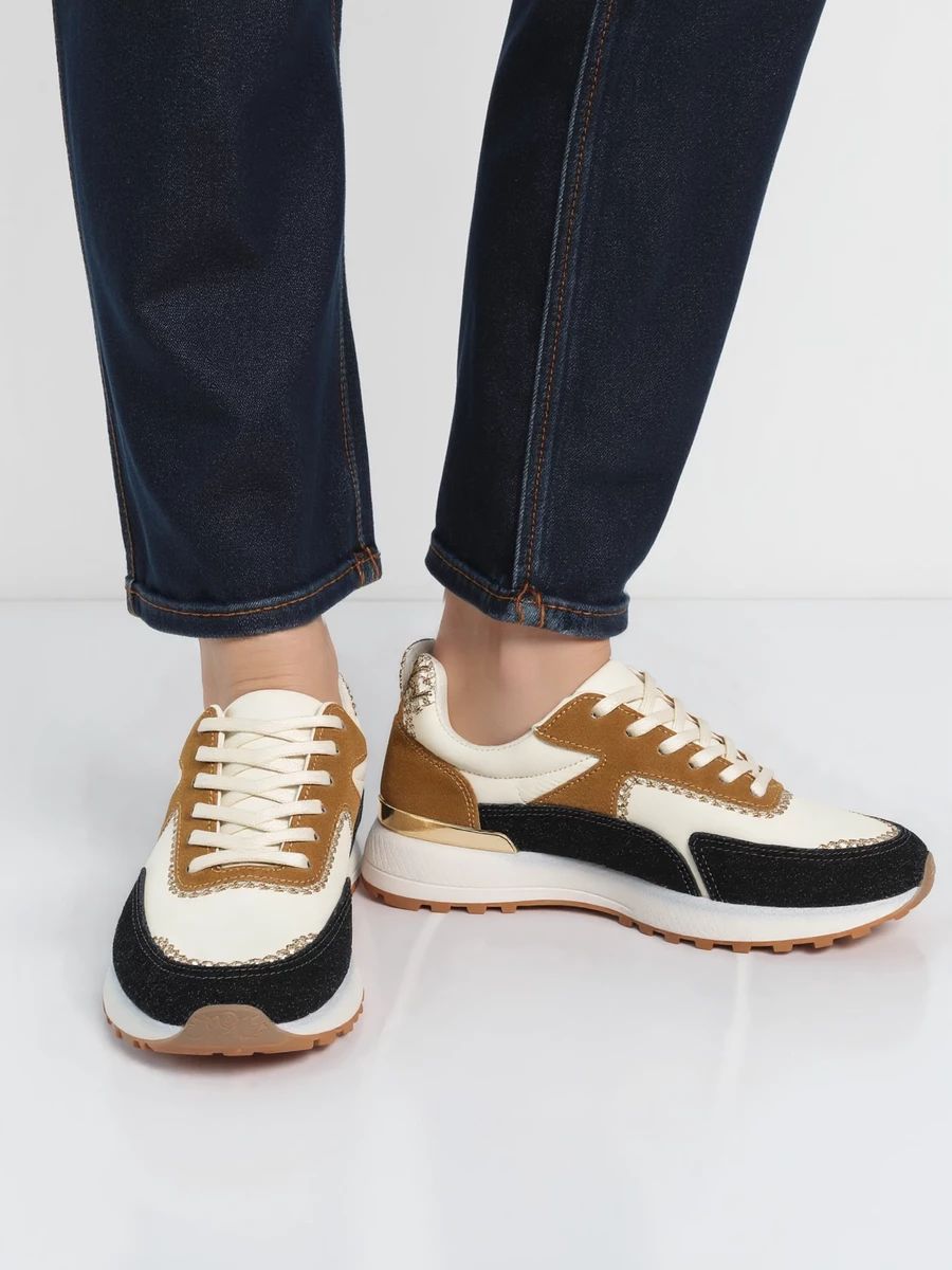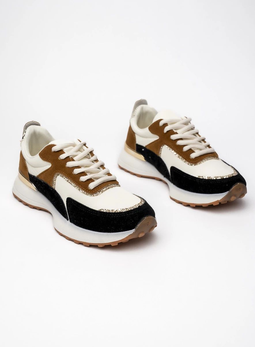 Dámske tenisky SENNA sú spojením klasického a moderného dizajnu. Vintage štýl podčiarkuje kontrastná farebná kombinácia a jemné zlaté detaily. Vďaka pevnej podrážke a pohodlnej konštrukcii poskytujú topánky každodenné pohodlie a zároveň dodávajú eleganciu akémukoľvek štýlu.